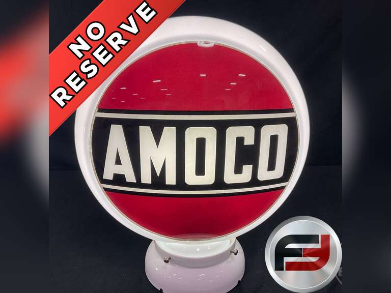 AMOCO PUMP GLOBE, MILK GLASS, TWO SIDED 16.5X16.5X 6.75, NO RESERVE