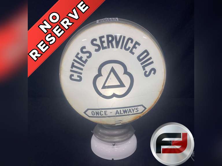 LOT 21052 - CITIES SERVICE OILS GASOLINE PUMP GLOBE, METAL BASE, TWO SIDED