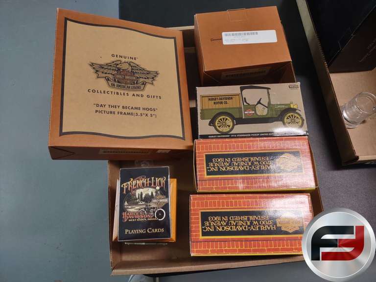 LOT 468175 - HARLEY-DAVIDSON COLLECTIBLES FLAT OF BANKS, FRAMES AND MORE