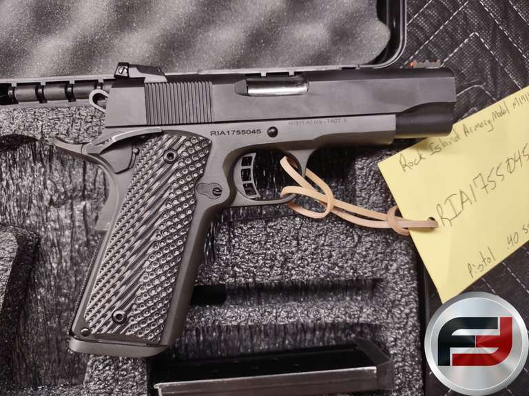 SEMI AUTOMATIC, BARREL LENGTH 4 1/8 INCH, 1 MAGAZINE, FIBER OPTIC FRONT SIGHT, 2 DOT WHITE ADJUSTABLE REAR SIGHT, AMBIDEXTROUS SAFETY, SKELTONIZED HAMMER & TRIGGER, STIPPLED BACK STRAP, AGGRESIVE TEXTURE G10 STYLE GRIPS, IN ORIGINAL HARDCASE BOX, COND: 90%