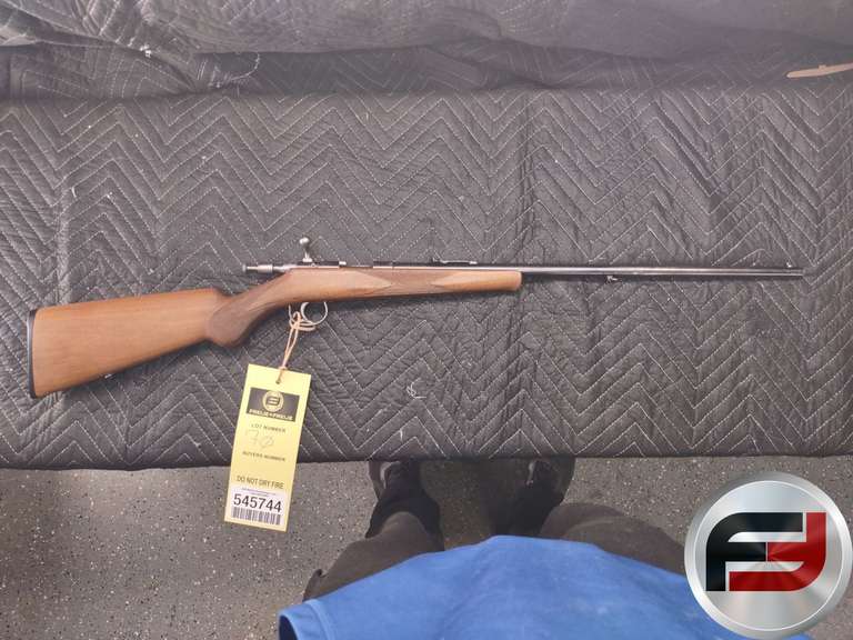 SINGLE SHOT RIFLE, BARREL LENGTH 22 INCH, ADJUSTABLE REAR SIGHT, FRONT DOVETAIL SIGHT, THUMB SAFETY, CHECKERED WOODSTOCK WITH CHEEK REST, SLING ATTACHMENTS, STOCK HAS SOME SCRATCHES, BARREL HAS SOME SPECKLING & MISSING SOME BLUING, COND: 80%