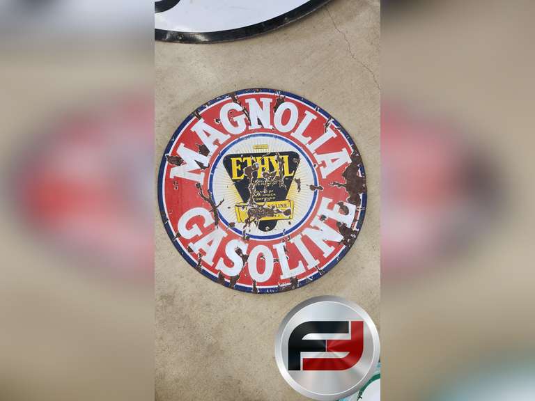 LOT 21124 - MAGNOLIA GASOLINE, DOUBLE SIDED 30" DIAM.